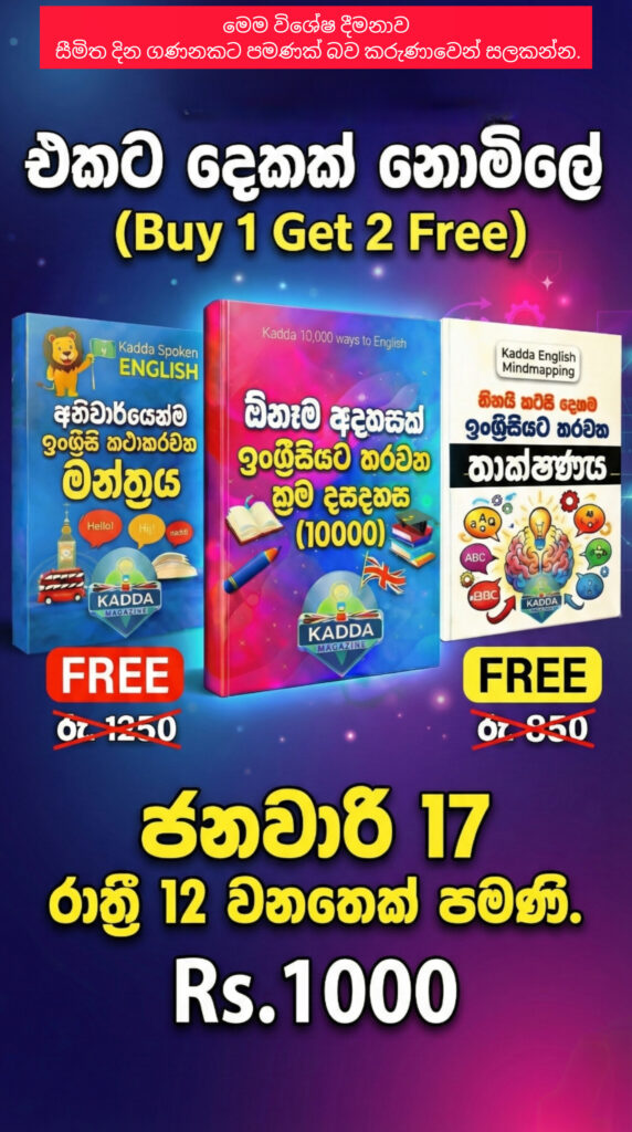 1️⃣ Kadda Magazine: ඕනෑම අදහසක් ඉංග්රීසියට හරවන “වාක්ය රටා 10,000” පොත (PDF).